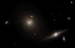 NGC 708 is an elliptical galaxy located 240 million light-years away[2] in the constellation Andromeda and was discovered by astronomer William Herschel on September 21, 1786.[3] It is classified as a cD galaxy[4][5] and is the brightest member of Abell 262.[6][7] NGC 708 is a weak[8] FR I radio galaxy[9][10][11][12][13] and is also classified as a type 2 Seyfert galaxy.[8][14][2]
