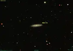 NGC 713 is a spiral galaxy located in the constellation of Cetus about 234 million light years from the Milky Way. It was discovered by the American astronomer Francis Leavenworth in 1886.[4][5][6]
