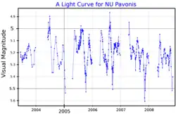 - ↑ "NU Pav". SIMBAD. Centre de données astronomiques de Strasbourg. Retrieved 5 September 2018.
