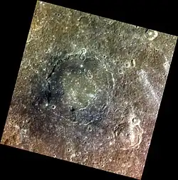 - ↑ Chapman, C. R., Baker, D. M. H., Barnouin, O. S., Fassett, C. I., Marchie, S., Merline, W. J., Ostrach, L. R., Prockter, L. M., and Strom, R. G., 2018. Impact Cratering of Mercury. In Mercury: The View After MESSENGER edited by Sean C. Solomon, Larry R. Nittler, and Brian J. Anderson. Cambridge Planetary Science. Chapter 9.
