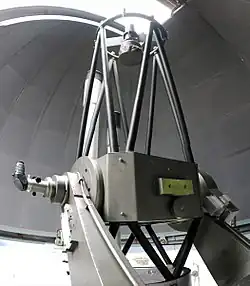 The Nasmyth telescope, also called Nasmyth–Cassegrain or Cassegrain–Nasmyth, is a reflecting telescope developed by the Scottish inventor James Nasmyth in 1845.[1] It is a modified form of a Cassegrain telescope, with light reflected sideways to an eyepiece.