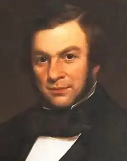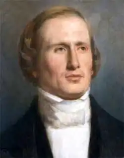 Claiming the right to name his discovery, Le Verrier quickly proposed the name Neptune for this new planet, though falsely stating that this had been officially approved by the French Bureau des Longitudes.[49] In October, he sought to name the planet Le Verrier, after himself, and he had loyal support in this from the observatory director, François Arago. This suggestion met with stiff resistance outside France.[50] French almanacs quickly reintroduced the name Herschel for Uranus, after that planet's discoverer Sir William Herschel, and Leverrier for the new planet.[51]