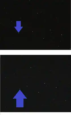 Some of the earliest known telescopic observations ever, Galileo's drawings on 28 Dec. 1612 and 27 Jan. 1613 (New Style) contain plotted points that match what is now known to have been the positions of Neptune on those dates. Both times, Galileo seems to have mistaken Neptune for a fixed star when it appeared close—in conjunction—to Jupiter in the night sky.[33] Hence, he is not credited with Neptune's discovery. At his first observation in Dec. 1612, Neptune was almost stationary in the sky because it had just turned retrograde that day. This apparent backward motion is created when Earth's orbit takes it past an outer planet. Because Neptune was only beginning its yearly retrograde cycle, the motion of the planet was far too slight to be detected with Galileo's small telescope.[34] In 2009, a study suggested that Galileo was at least aware that the "star" he had observed had moved relative to fixed stars.[35]
