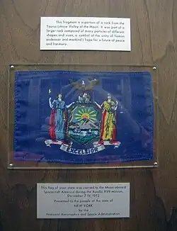 The New York lunar sample displays are two commemorative plaques consisting of small fragments of Moon specimen brought back with the Apollo 11 and Apollo 17 lunar missions and given in the 1970s to the people of the state of New York by United States President Richard Nixon as goodwill gifts.