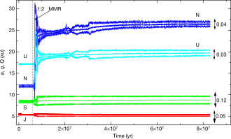 - 1 2 3 4 Tsiganis, K.; Gomes, R.; Morbidelli, A.; F. Levison, H. (2005). "Origin of the orbital architecture of the giant planets of the Solar System" (PDF). Nature. 435 (7041): 459–461. Bibcode:2005Natur.435..459T. doi:10.1038/nature03539. PMID 15917800. S2CID 4430973.