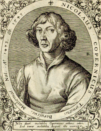 Copernicus holding lily-of-the-valley: portrait in Nicolaus Reusner's Icones (1587).[52][n]
