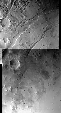 - ↑ Craddock, R. 1994. Geological history of Isidis Planitia and Syrtis Major Planum, Mars. Houston, Texas, LPS XXV. 291–292