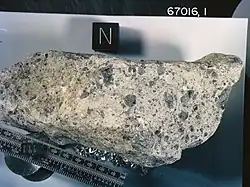 | 67035 | rock | - | Fragmental breccia | Very friable, light matrix breccia; was found to be 3.95 b.y. |