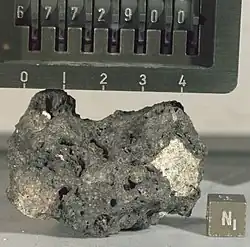 | 67115 | rake | ![]() | breccia | Glass coat is rather thick, but has been fractured and broken off by micrometeorite bombardment |