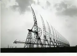 The Northern Cross Radio Telescope (also known as the Medicina Northern Cross (MNC))[3] (and Croce del Nord in Italian) is one of the largest transit radio telescopes in the world. Observations are focused around 408 MHz (UHF band), corresponding to 73.5 cm wavelength. The older receivers of the telescope function with a 2.5 MHz wide frequency band, while the upgraded parts have a 16 MHz bandwidth.[4] The telescope is steerable only in declination, meaning that it can solely observe objects that are culminating on the local celestial meridian.[2] The telescope is T-shaped and consists of: