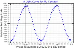 - 1 2 3 4 5 Schrijvers, C.; Telting, J. H. (November 2002), "Identification of non-radial pulsation modes in the close-binary beta Cephei star nu Centauri", Astronomy and Astrophysics, 394 (2): 603–615, Bibcode:2002A&A...394..603S, doi:10.1051/0004-6361:20021154