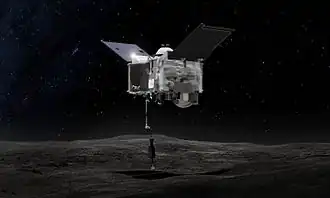 This article incorporates text from this source, which is in the public domain. - ↑ "OSIRIS-REx TAGS Asteroid Bennu". OSIRIS-Rex Asteroid Sample Return Mission. The University of Arizona. 21 October 2020. Retrieved 29 September 2023.