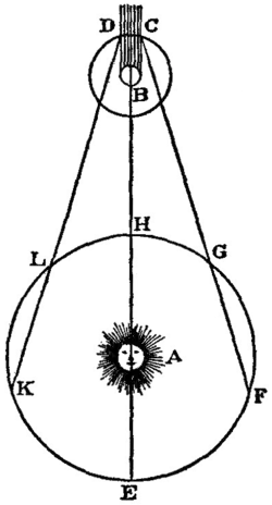 This second inequality appears to be due to light taking some time to reach us from the satellite; light seems to take about ten to eleven minutes [to cross] a distance equal to the half-diameter of the terrestrial orbit.[24]