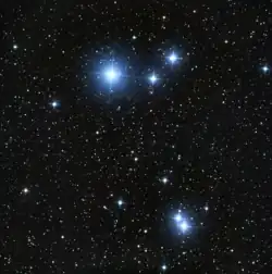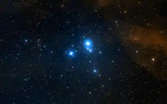 IC 2391 (also known as the Omicron Velorum Cluster or Caldwell 85) is an open cluster in the constellation Vela consisting of hot, young, blueish stars, some of which are binaries and one of which is a quadruple. Persian astronomer A. a.-R. al-Sufi first described it as "a nebulous star" in c. 964.[2][3] It was re-found by Abbe Lacaille and cataloged as Lac II 5.