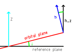 In astrodynamics, the inclination can be computed from the orbital momentum vector (or any vector perpendicular to the orbital plane) as where is the z-component of .