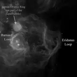 The Orion–Eridanus Superbubble or Eridanus Soft X-ray Enhancement is a superbubble located west of the Orion Nebula. The region is formed from overlapping supernova remnants that may be associated with the Orion OB1 stellar association; the bubble is approximately 1200 ly across.[1] It is the nearest superbubble to the Local Bubble containing the Sun, with the respective shock fronts being about 500 ly apart.[1]