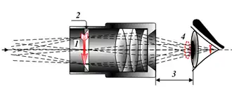 - ↑ Gross, Herbert; Zügge, Hannfried; Blechinger, Fritz; Achtner, Bertram, eds. (11 April 2008). Survey of Optical Instruments. Handbook of Optical Systems. Vol. 4. § 37.6.1, pp 109–110. ISBN 978-3-5274-0382-0.