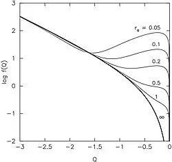 If ra is assigned too small a value, f may be negative for some Q. This is a consequence of the fact that spherical mass models can not always be reproduced by purely radial orbits. Since the number of stars on an orbit can not be negative, values of ra that generate negative f's are unphysical. This result can be used to constrain the maximum degree of anisotropy of spherical galaxy models.[3]
