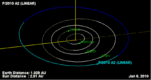 - 1 2 3 4 Harrington, J. D.; Villard, Ray (2 February 2010). "Suspected Asteroid Collision Leaves Trailing Debris". NASA Release : 10-029. Retrieved 3 February 2010.