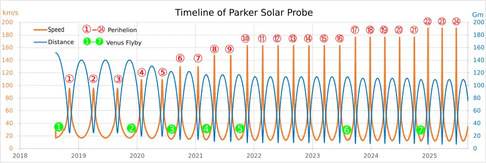 - 1 2 3 See data and figure at "Solar Probe Plus: The Mission". Johns Hopkins University Applied Physics Laboratory. 2017. Archived from the original on August 22, 2017. Retrieved June 17, 2017.