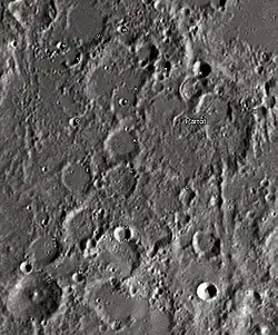 Parrot is the remains of a lunar impact crater that has been almost completely worn away. It was named after Russian doctor and physicist Friedrich Parrot.[1] It is attached to the southern rim of the crater Albategnius, and is located among the rugged highlands among the south-central part of the visible Moon. To the east is the small crater Vogel, and in the southeast is Arzachel.