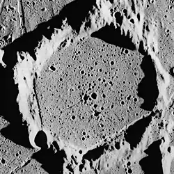 Parry is a lunar impact crater that is attached to the southeast rim of the walled plain Fra Mauro. It was named after British explorer William Parry.[1] Attached to the west and southwest rim of Parry is the crater Bonpland. Due south of Parry is the small crater Tolansky, and farther to the south-southwest is Guericke.