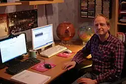 ![]() Peter Jalowiczor in his study (taken 2010) showing PCs set-up for the analysis of extrasolar planetary data. | |