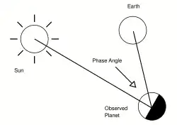 In observational astronomy, phase angle is the angle between the light incident onto an observed object and the light reflected from the object. In the context of astronomical observations, this is usually the angle Sun-object-observer.