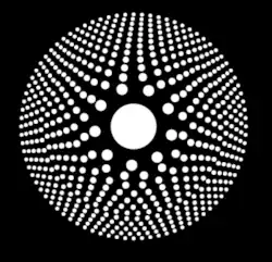 A photon sieve is a device for focusing light using diffraction and interference. It consists of a flat sheet of material full of pinholes that are arranged in a pattern which is similar to the rings in a Fresnel zone plate, but with the ability to bring light to much sharper focus. The sieve concept, first developed in 2001,[1] is versatile because the characteristics of the focusing behaviour can be altered to suit the application by manufacturing a sieve containing holes of several different sizes and different arrangement of the pattern of holes.