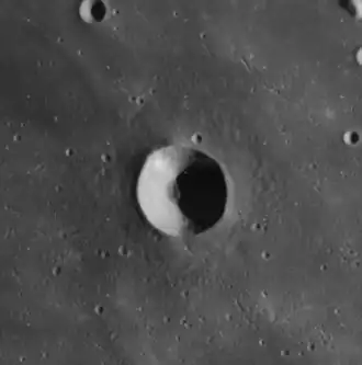 Piazzi Smyth is a small lunar impact crater in the eastern part of the Mare Imbrium. It was named after Scottish astronomer Charles Piazzi Smyth.[1] This is an isolated feature located about 100 kilometers to the southwest of the Montes Alpes mountain range. To the southeast of this crater is Mons Piton, an isolated mountain that rises to a height of 2.3 km and occupies a diameter of about 25 km.