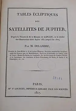 Further developments of these theorems on planetary motion were given in his two memoirs of 1788 and 1789, but with the aid of Laplace's discoveries, the tables of the motions of Jupiter and Saturn could at last be made much more accurate. It was on the basis of Laplace's theory that Delambre computed his astronomical tables.[13]