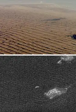 - ↑ McCord, T. B.; Hansen, G. B.; Buratti, B. J.; Clark, R. N.; Cruikshank, D. P.; D’Aversa, E.; Griffith, C. A.; Baines, E. K. H.; Brown, R. H.; Dalle Ore, C. M.; Filacchione, G.; Formisano, V.; Hibbitts, C. A.; Jaumann, R.; Lunine, Jonathan I.; Nelson, R. M.; Sotin, C. (2006). "Composition of Titan's surface from Cassini VIMS". Planetary and Space Science. 54 (15): 1524–1539. Bibcode:2006P&SS...54.1524M. doi:10.1016/j.pss.2006.06.007.