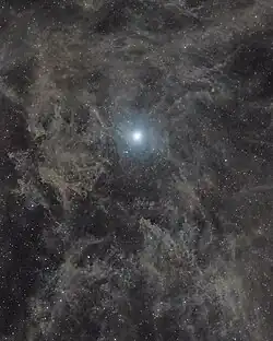 The Polaris Flare is a filamentous gas cloud in the Milky Way which is seen in the sky in the region of the constellation Ursa Minor and around the star Polaris.[2][4] The area on the sky is estimated at 50 square degrees.[1] The range is approximately 500 light years.[2]
