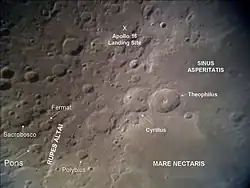 Pons is a lunar impact crater that is located to the west of the prominent Rupes Altai scarp. It was named after French astronomer Jean-Louis Pons.[1] It lies to the southeast of the crater Sacrobosco, and southwest of Polybius. To the northwest along the same flank of the formation is the crater Fermat.