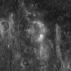 - ↑ Chapman, C. R., Baker, D. M. H., Barnouin, O. S., Fassett, C. I., Marchie, S., Merline, W. J., Ostrach, L. R., Prockter, L. M., and Strom, R. G., 2018. Impact Cratering of Mercury. In Mercury: The View After MESSENGER edited by Sean C. Solomon, Larry R. Nittler, and Brian J. Anderson. Cambridge Planetary Science. Chapter 9.