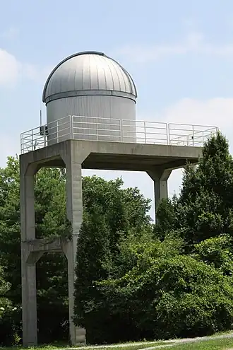 The Principia Astronomical Observatory is an observatory located on the campus of Principia College, in Elsah, Illinois, United States. The observatory was installed on June 18, 1998.[1] It features a 16[2] inch mirror and is of a Ritchey-Chretien design. The objective focal length of the telescope is 4000 mm. The control software is by the Telescope Control System written by Dave Harvey of Comsoft Software (of Tucson, AZ). The mirror was ground and certified by Don Loomis, former chief optician at Kitt Peak National Laboratories. The telescope was manufactured by Optomechanics Research.
