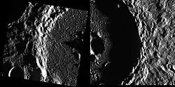 Prokofiev is a crater near the north pole of the planet Mercury, named after the Russian composer Sergei Prokofiev.[2] Data from the MESSENGER spacecraft indicates that it contains water ice and organic compounds.[3] Although other craters in Mercury's north polar region are also believed to contain ice, Prokofiev is the largest of them, with probable surface ice along the southern crater floor that is in perpetual darkness.[4]