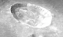 ![]() Lunar Orbiter 4 image (Streak crossing below crater is blemish on original image) | |