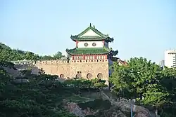The Qingdao Observatory is located on the summit of Guanxiang Mountain in the Shinan District of Qingdao, China. The existing building complex was originally built in 1905. Qingdao Observatory was once an important scientific research institute in Qingdao, and also played an important role in the development of modern meteorology and marine science in China. Together with Shanghai Xujiahui Observatory and Hong Kong Observatory, they once were known as the "Three Observatory in the Far East".[1] Qingdao Observatory has been listed as "Meteorology Observation Dome" amongst the "Top Ten Scenic Spots in Qingdao".[2] Its building complex now belongs to the North Sea Fleet of the PLA (People’s Liberation Army) Navy and the Zijinshan Observatory of the Chinese Academy of Sciences, and is part of the Qingdao German Building Complex, a national key cultural relics conservation site.[3]
