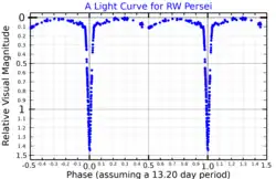 - 1 2 Schaefer, Bradley E.; Fried, Robert E. (January 1991), "RW Per: Nodal Motion Changes its Amplitude by 1.4 Mag", Astronomical Journal, 101: 208, Bibcode:1991AJ....101..208S, doi:10.1086/115680.