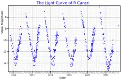- 1 2 3 4 VSX; Otero, S. A. (7 January 2011). "R Cancri". AAVSO Website. American Association of Variable Star Observers. Retrieved 26 Jan 2021.
