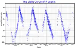 - 1 2 "GCVS Query=R Leo". General Catalogue of Variable Stars @ Sternberg Astronomical Institute, Moscow, Russia. Retrieved 2012-08-22.