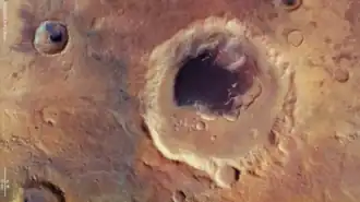 ![]() ESA's Mars Express' HRSC photo of Rabe Crater, North is to the right | |