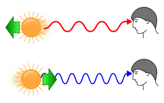 If a source of the light is moving away from an observer, then redshift (z > 0) occurs; if the source moves towards the observer, then blueshift (z < 0) occurs. This is true for all electromagnetic waves and is explained by the Doppler effect. Consequently, this type of redshift is called the Doppler redshift. If the source moves away from the observer with velocity v, which is much less than the speed of light (vc), the redshift is given by