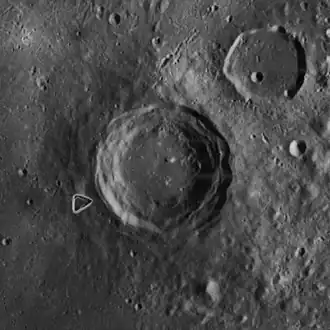 ![]() Lunar Orbiter 4 image of Reinhold (center) and Reinhold B (upper right) (triangular spot is blemish on original) | |
