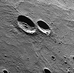 Oblique view of Rikyū (right) and Varma (left) craters