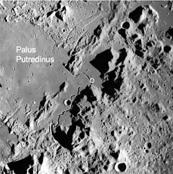 Hadley–Apennine is a region on the near side of Earth's Moon that served as the landing site for the American Apollo 15 mission, the fourth crewed landing on the Moon and the first of the "J-missions", in July 1971.[1][2] The site is located on the eastern edge of Mare Imbrium on a lava plain known as Palus Putredinis. Hadley–Apennine is bordered by the Montes Apenninus (often referred to as "Apennine Front"), a mountain range, and Hadley Rille, a meandering channel, on the east and west, respectively.[3][4]