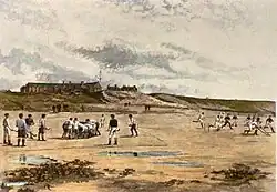 - Rossall hockey – A relatively famous[34][38] game unique to Rossall – a cross between rugby and hockey, originally derived from the Eton field game, played on the beach in the harshest winter months.