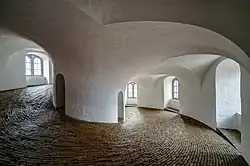 The Round Tower (Danish: Rundetårn) is a 17th-century tower in Copenhagen, Denmark, one of the many architectural projects of Christian IV. Built as an astronomical observatory, it is noted for its equestrian staircase, a 7.5-turn helical corridor leading to the platform at the top (34.8 meters above ground), and its views over Copenhagen.