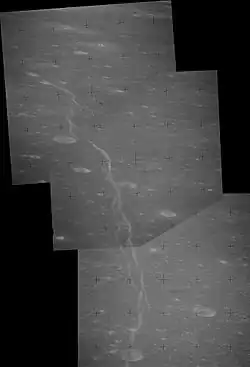 The feature name is shown as Fossa Casals on a 1974 map[4] based on Apollo 15 photographs, but the name was not approved by the IAU.[5] The term Rupes was used in favor of Fossa for the names of lunar scarps (such as Rupes Recta or Rupes Altai).